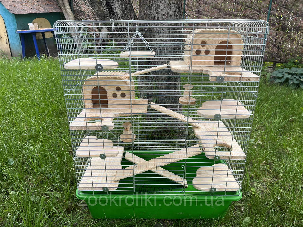 Велика та простора карта для шиншил, білок, дегу. Клітка має високий піддон, знімний дах і три дверцята спереду.